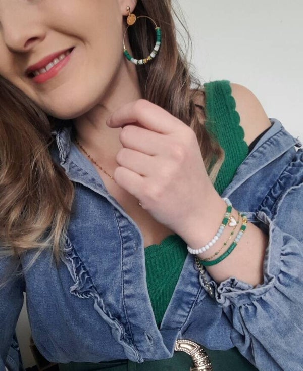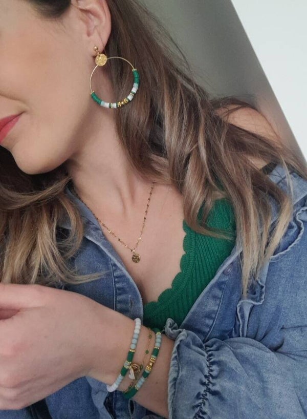 On craque sur ces magnifiques créoles bi color [mixte de vert rose poudré & blanc]