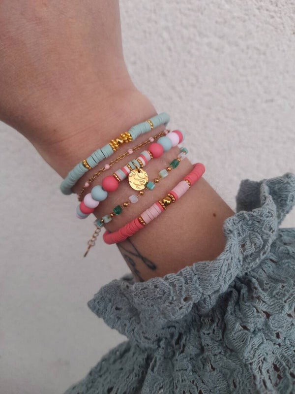 Coup de coeur sur ce joli bracelet avec sa petite chaine fine aux mixte de verts
