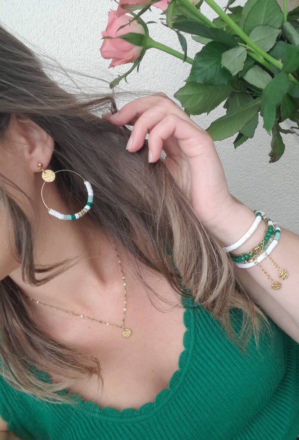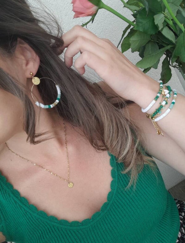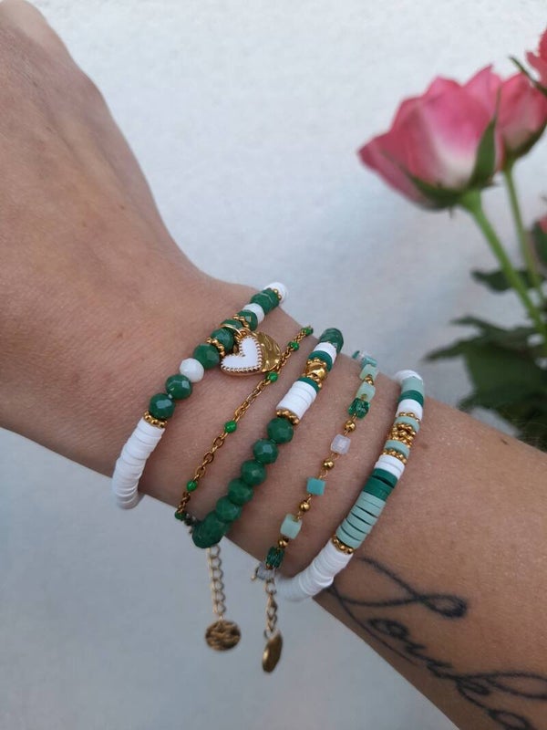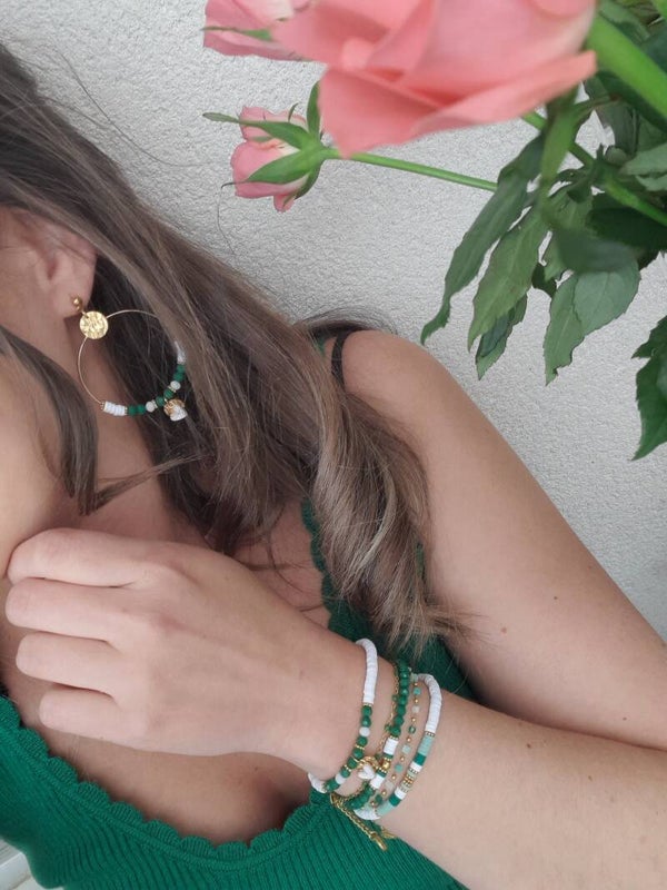 De magnifiques bracelets élastiqués vert & blanc à composer selon vos envies