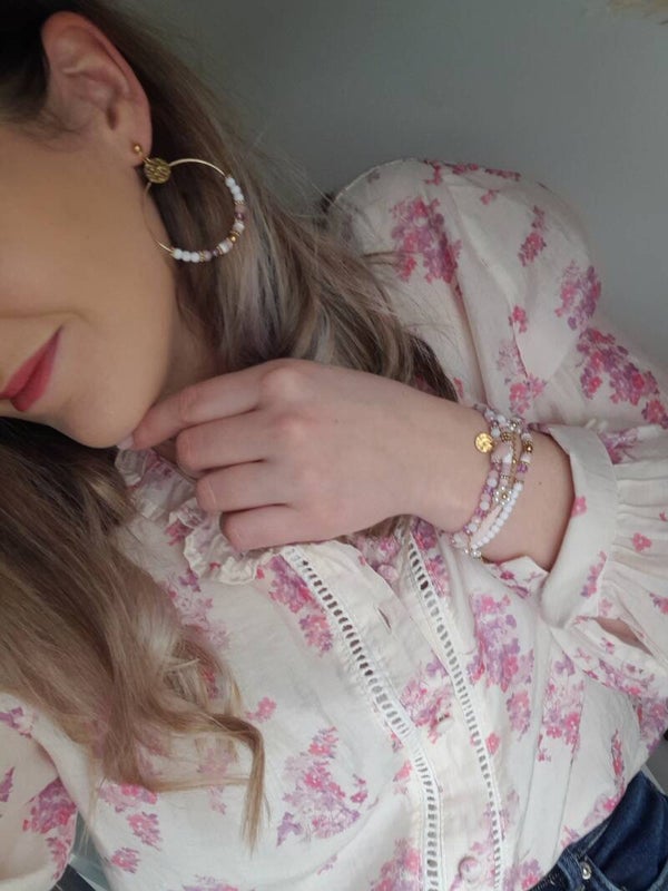 Créoles bi color mauve rose & blanc 💜
