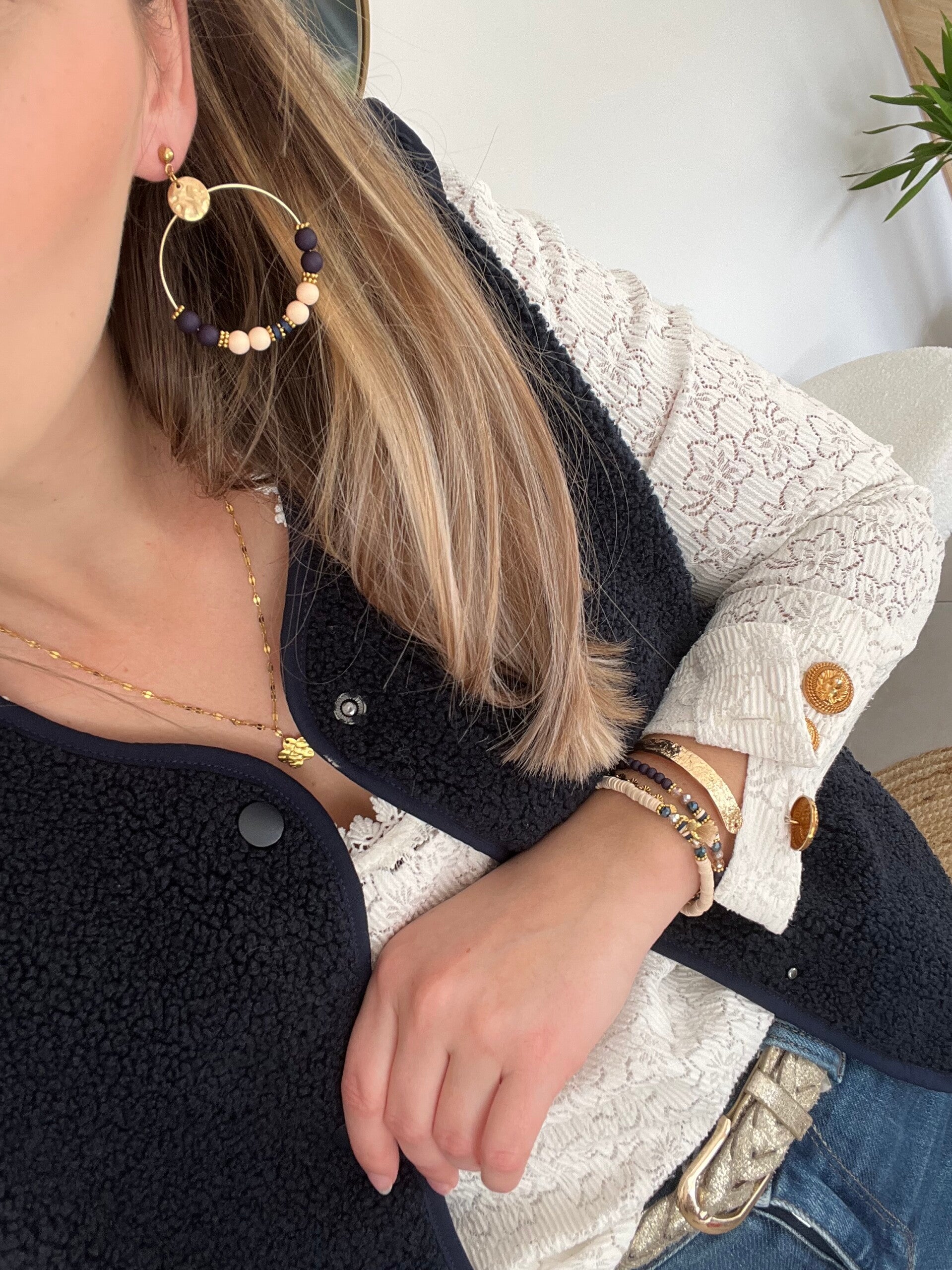 Boucles marine & beige
