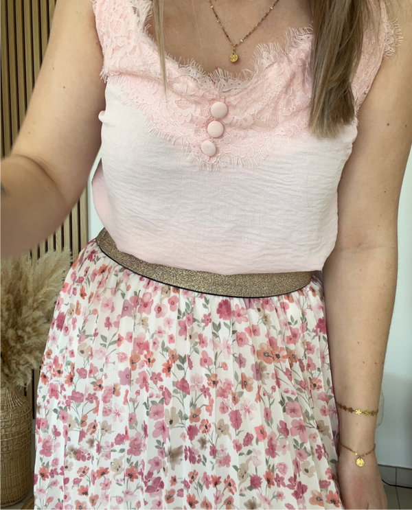 je porte avec le petit top, dentelle, rose, poudré que vous pouvez retrouver sur ma boutique également
