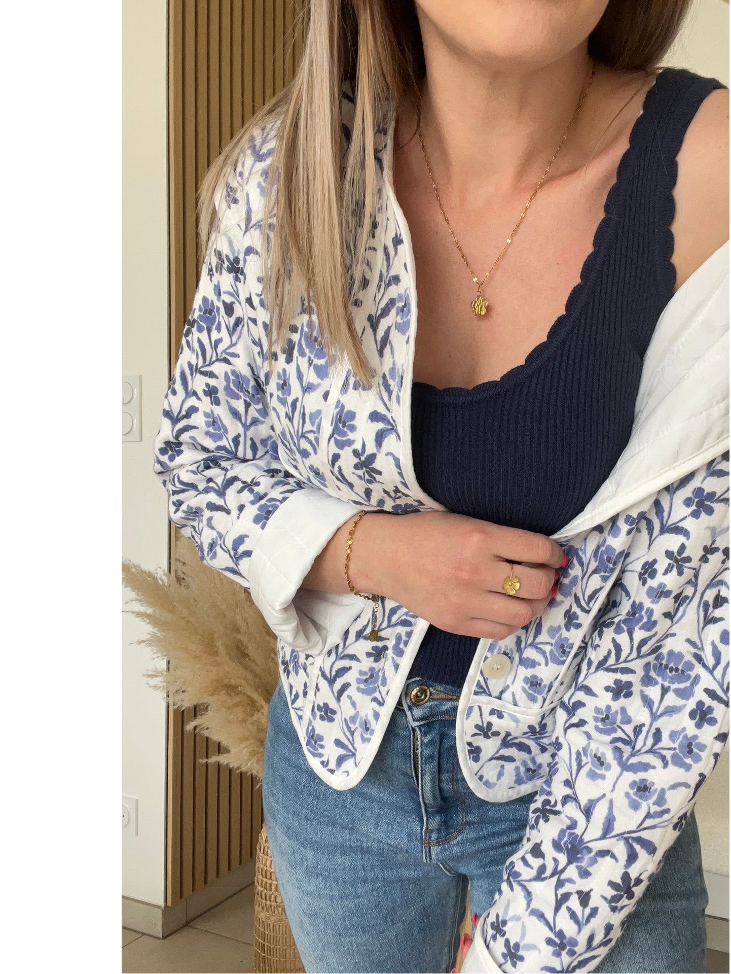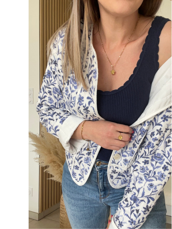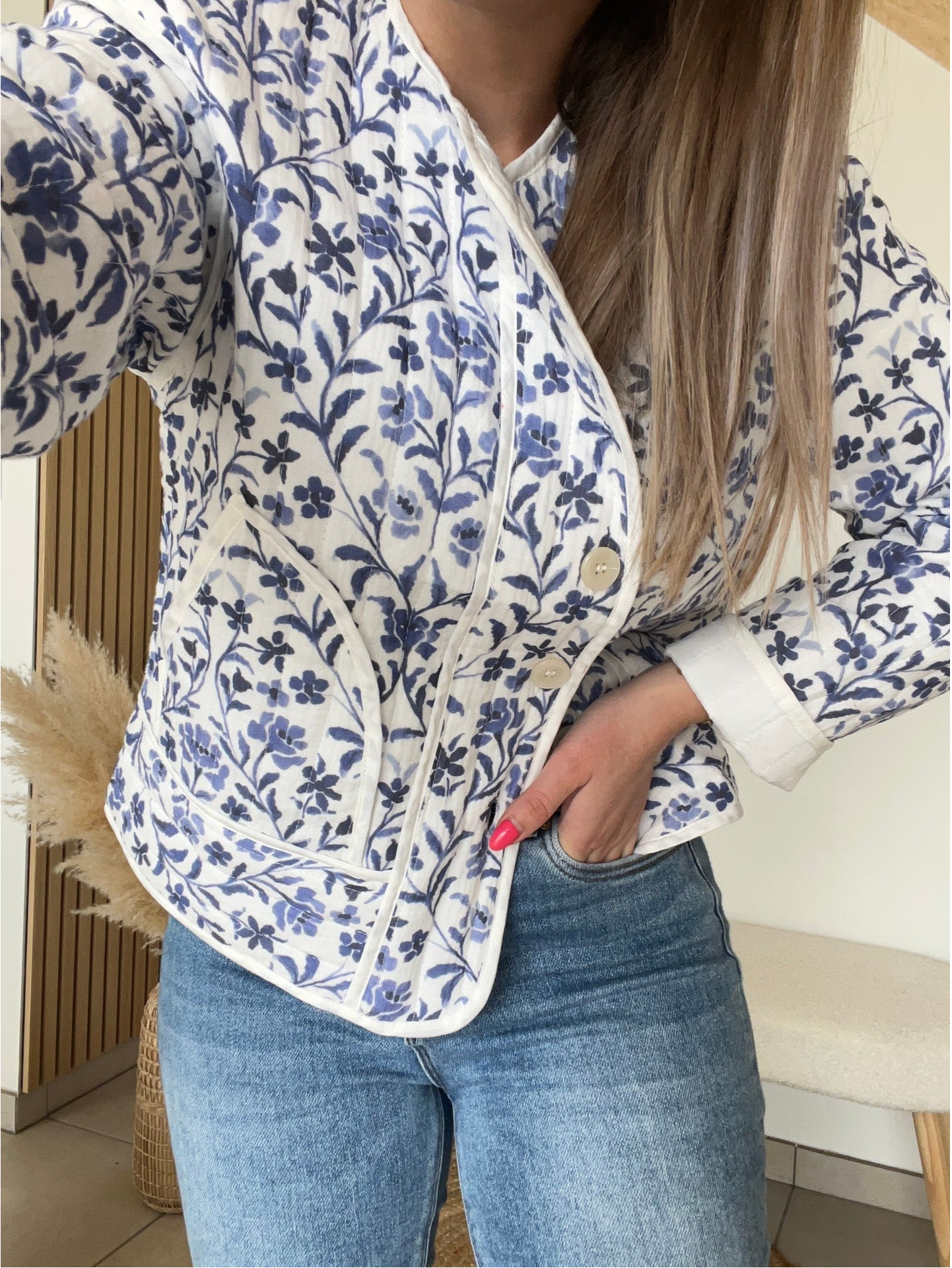 Une petite veste de de mi saison juste parfaite qui allie confort et élégance avec son joli imprimé libertie.