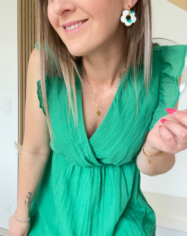 Une jolie robe verte fluide à porter avec ou sans ceinture